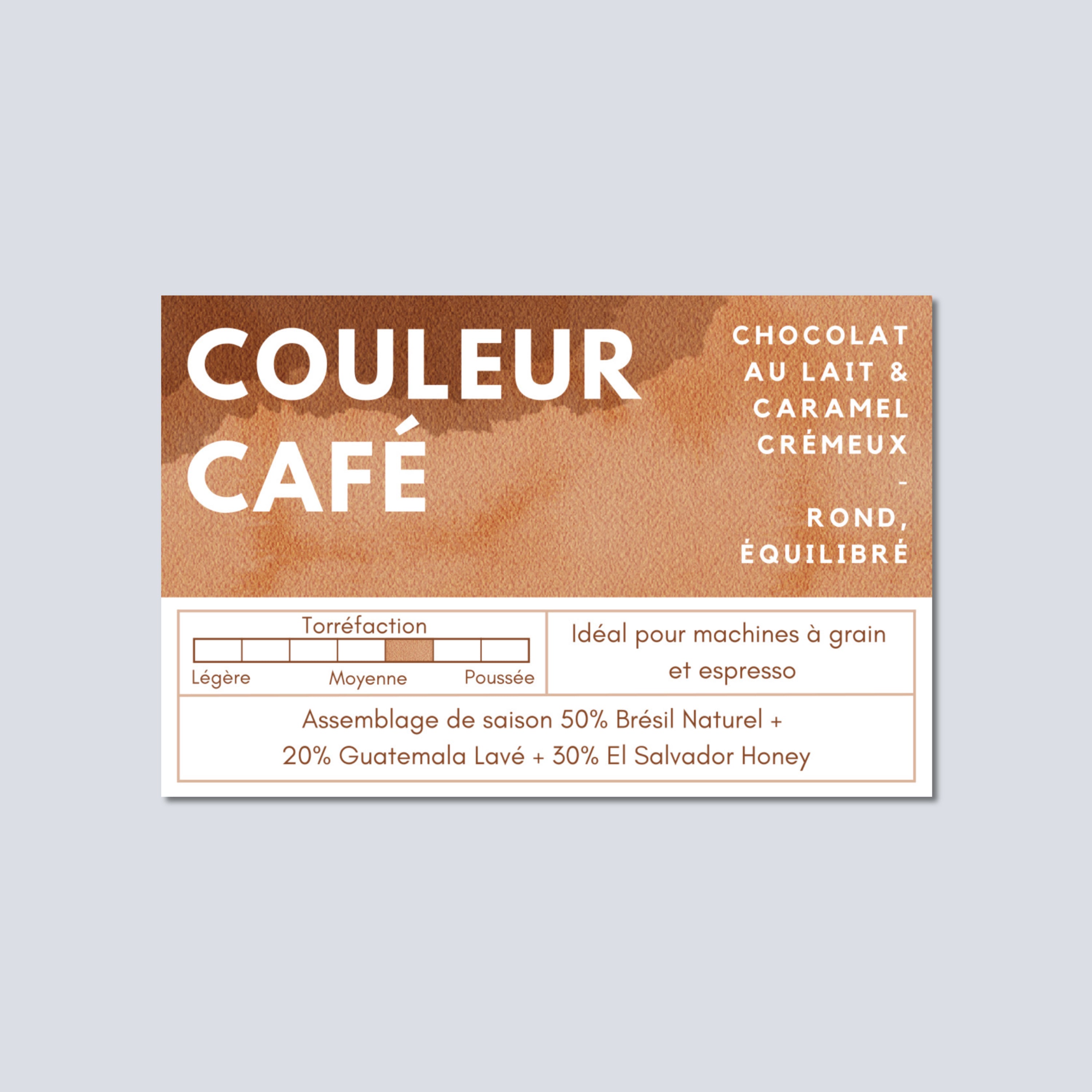 Découvrez 'Couleur Café', un assemblage subtil et harmonieux, idéal pour ceux qui apprécient un café équilibré et rond.